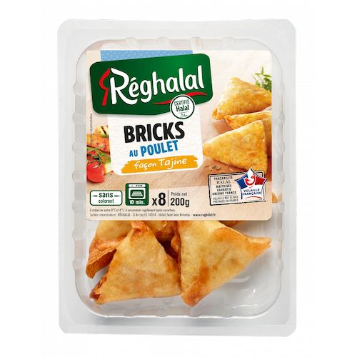 Une brick gourmande inspirée de la tajine. Une recette à base de poulet halal origine France, aux épices et arôme de citron. Traçabilité halal maîtrisée : produit certifié par la Mosquée d’Évry Courcouronnes. Garantie Origine France : Volaille née, élevée et préparée en France.
