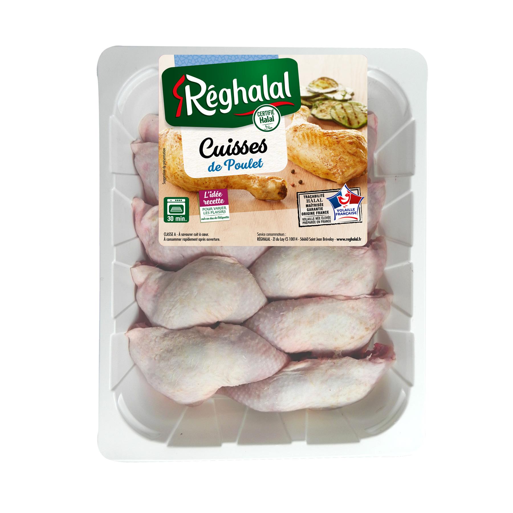 Tendre et savoureuse, la cuisse de poulet peut être préparée de différentes façons : au four, à la cocotte ou à la casserole ! Juste dorée ou intégrée à un de vos plats comme le poulet basquaise pas exemple, elle plaira à tous ! Traçabilité halal maîtrisée. Garantie origine France : volaille née, élevée et préparée en France.