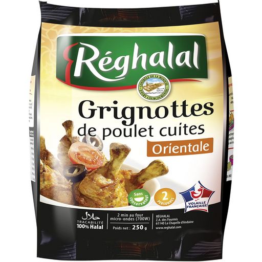 Les grignottes de poulet orientale Réghalal sont sans conservateur. Les manchons de poulet halal sont rapides à préparer et délicieux à déguster.