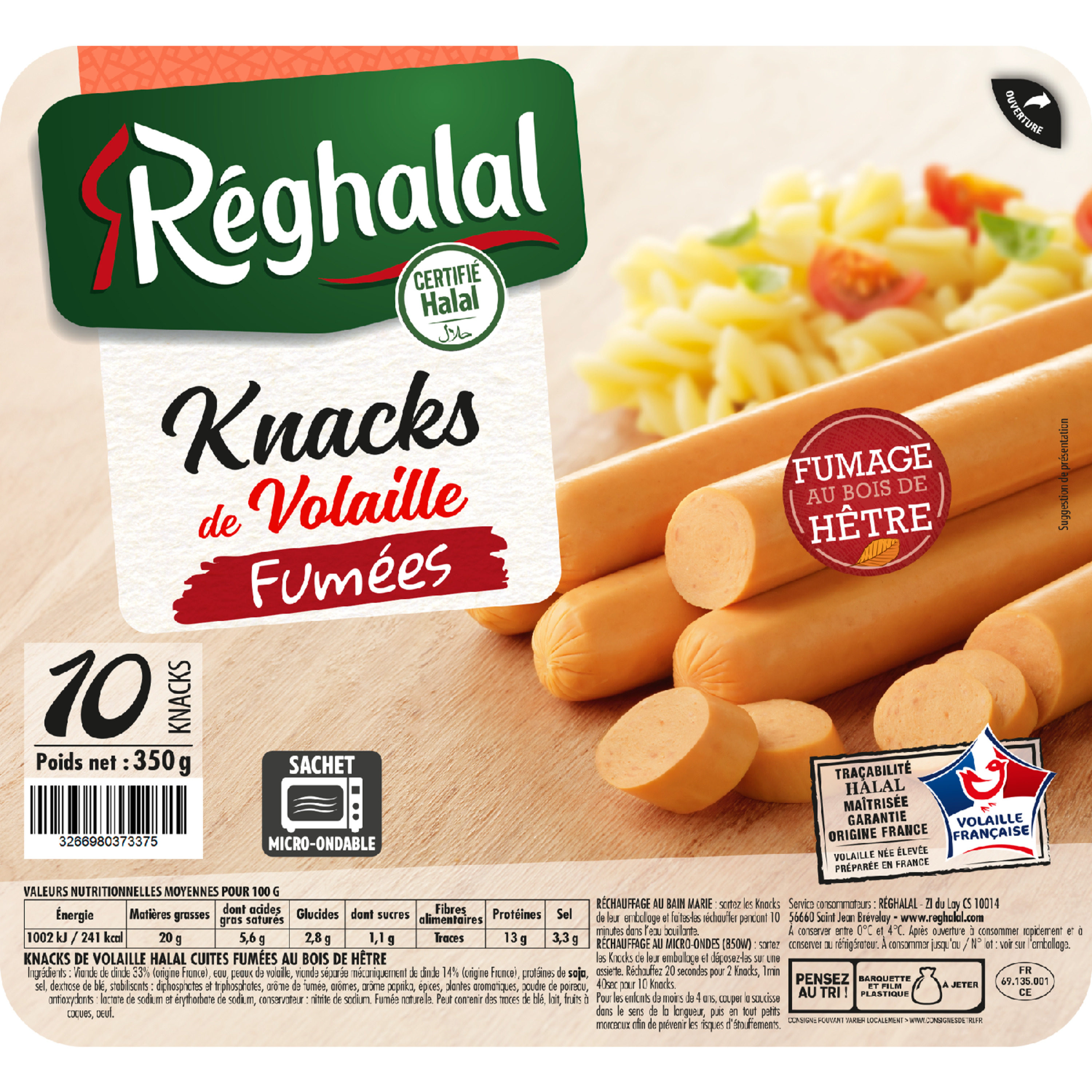 De véritables knacks de volaille halal 100% origine France adorées des enfants! Pratiques, les knacks de volaille Réghalal se réchauffent en quelques minutes.