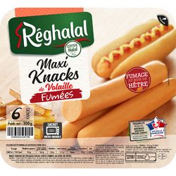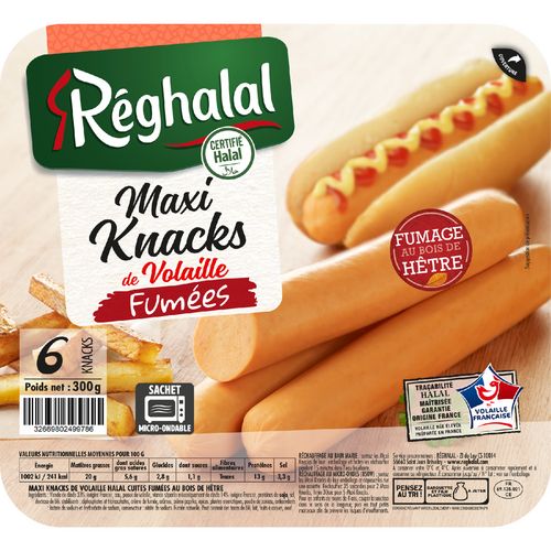 Un format généreux en exclusivité par Réghalal pour vos hot dog halal ou en cœur de repas! Ces maxi knacks de volaille sont qualitatives et riches en goût.