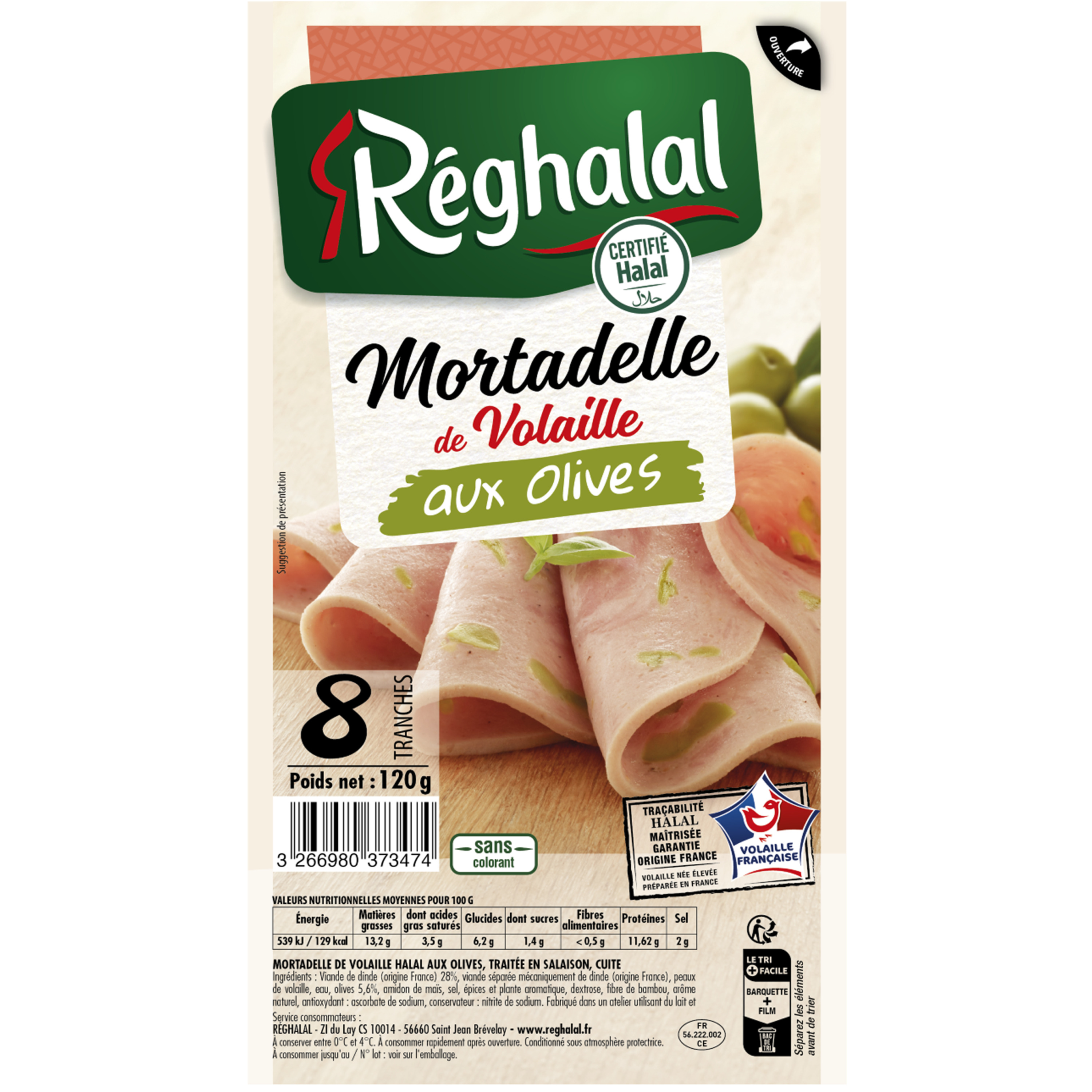 Largement appréciée, la mortadelle aux olives Réghalal est une spécialité de charcuterie savoureuse et riche en goût. Cette mortadelle aux olives est agrémentée de beaux morceaux d’olives vertes pour apporter saveur à vos repas