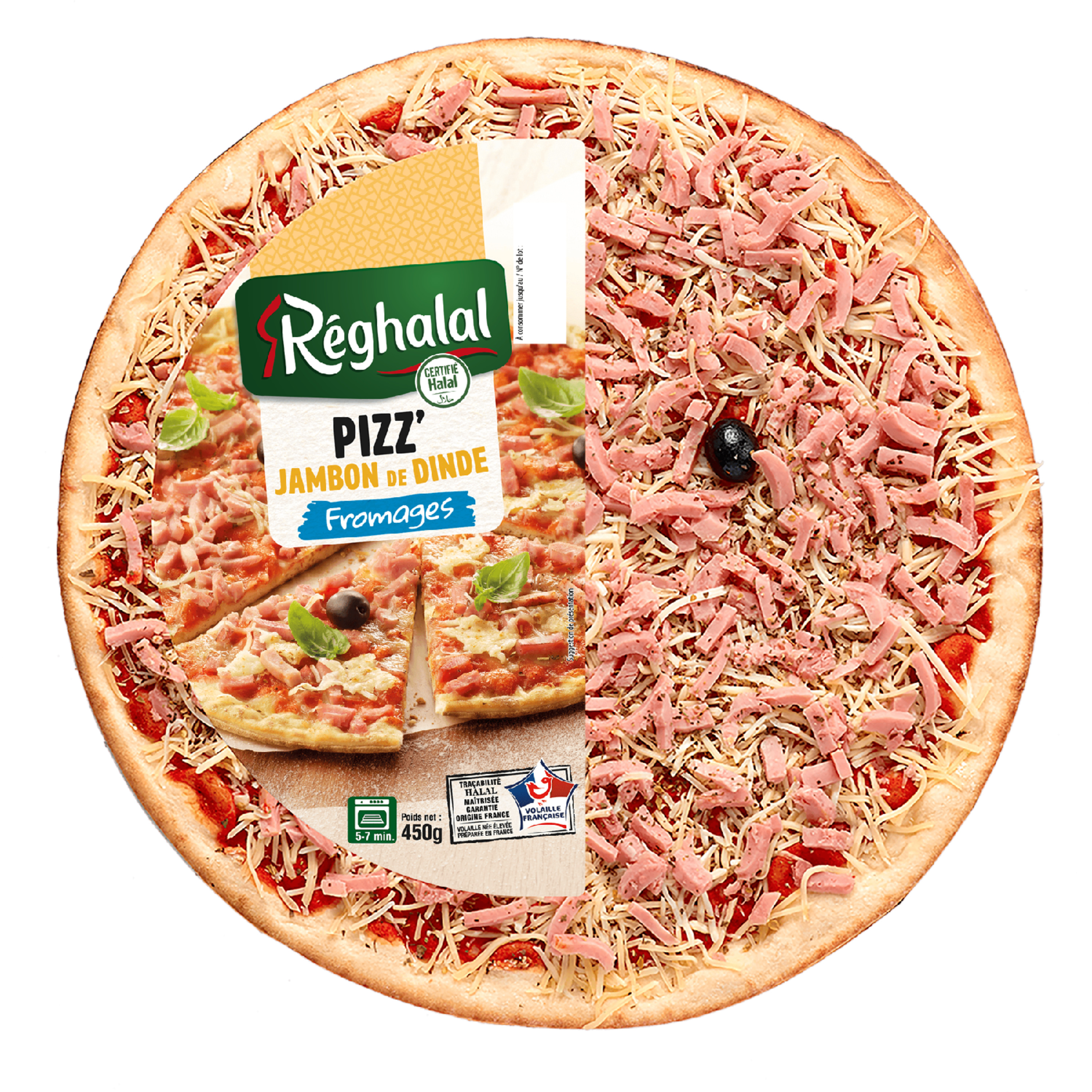 Pizza au jambon de dinde standard cuit halal et à l’emmental.