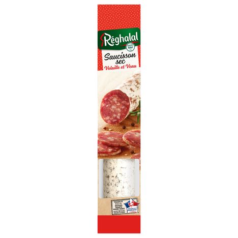 Lentement séché, ce saucisson sec de volaille halal se grignotte en famille ou entre amis ! Il est aussi parfaitement adapté pour des assemblages faciles et savoureux comme des petites brochettes halal apéritives aux tomates cerises et dés de gruyère!