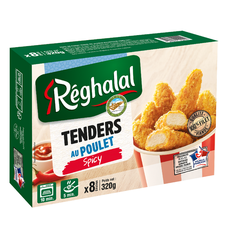 Le tenders au poulet spicy halal se compose d'une viande 100% filet, enrobée d’une panure croustillante et finement épicée. Tendance et savoureux, les tenders ferons plaisir à toute la famille ! Une solution simple et rapide à préparer en seulement quelques minutes pour composer vos menus snacking; en wrap, en salade, ou à dipper avec une sauce !