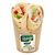Tortilla avec graines de lin garni d’émincé de poulet traité cuit et rôti Halal, de fromage frais, de yaourt, de mayonnaise allégée en matières grasses et d’emmental.