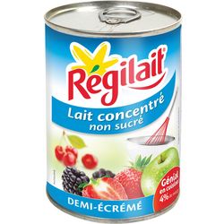 LAIT demi-écrémé (origine U.E.), stabilisants: phosphates de sodium, carraghénanes. Matières grasses: 4% - Extrait sec lactique dégraissé: 20%