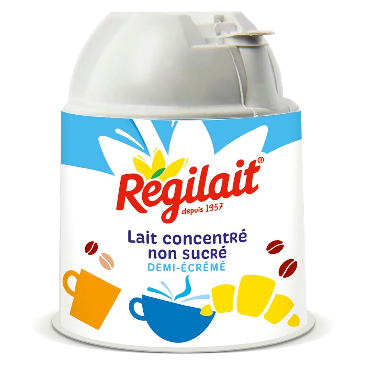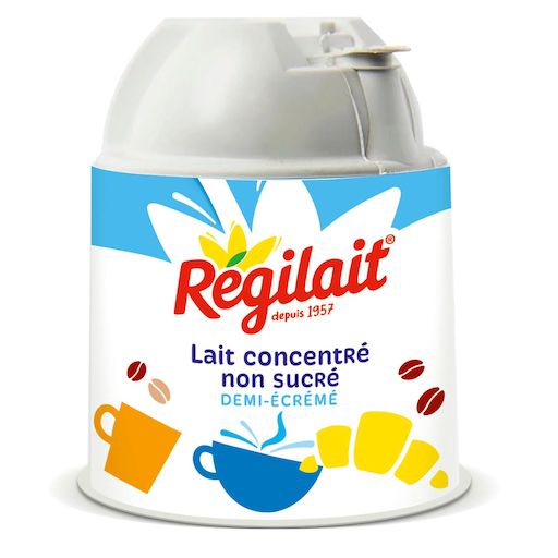 Lait concentré non sucré demi-écrémé. Format ultra pratique: refermable