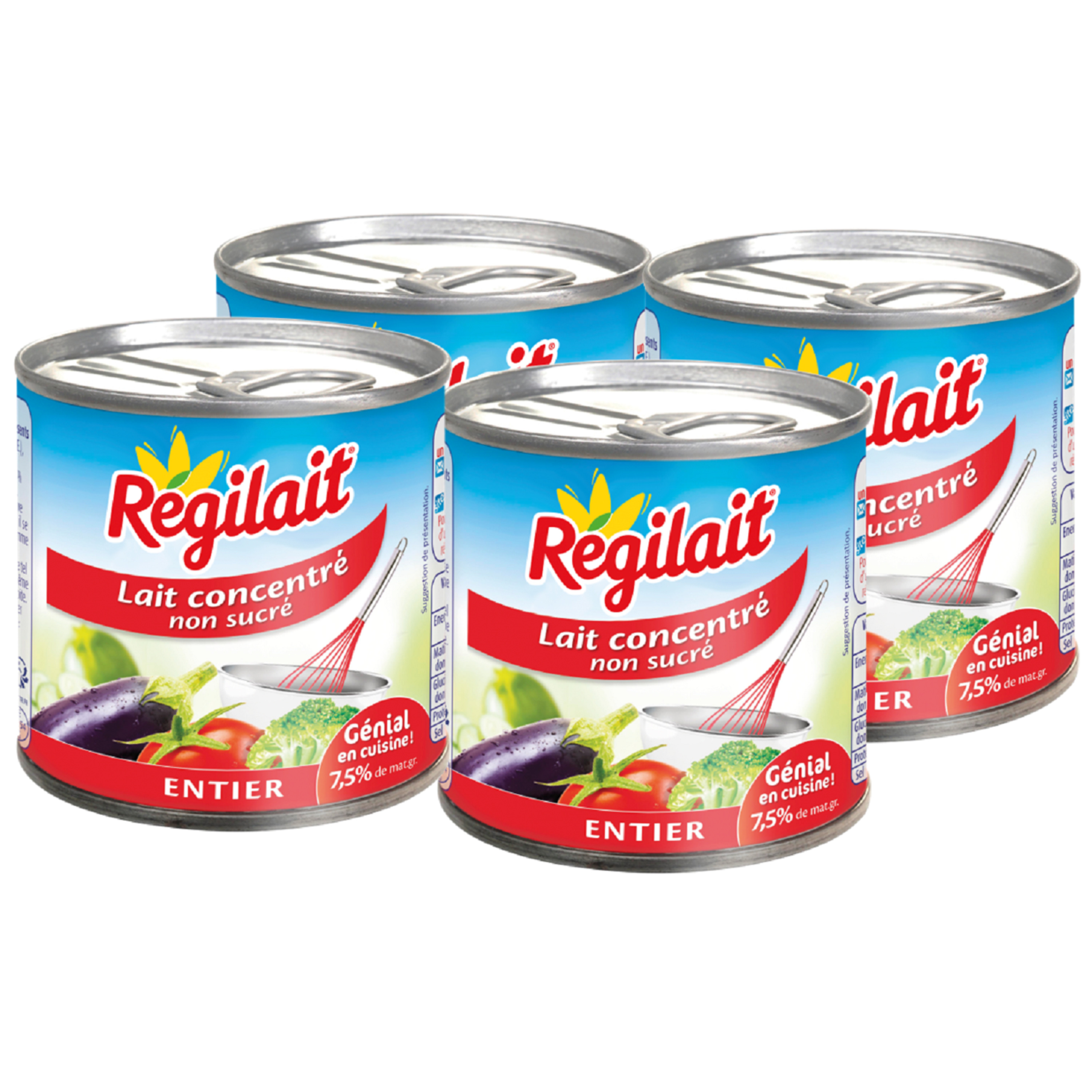 4 boites de 170g de lait concentré non sucré. Idéal pour des recettes salées ou sucré.