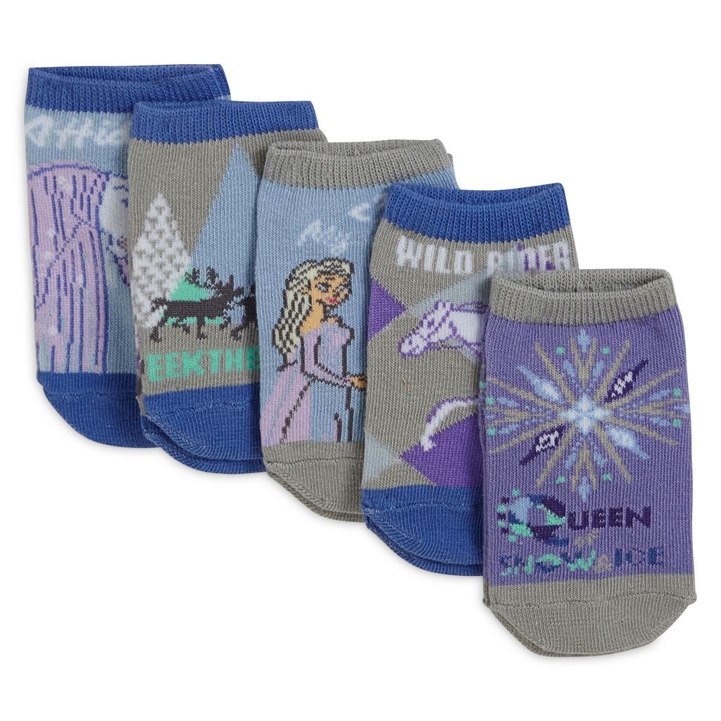 Ce lot de 5 paires de chaussettes Reine des Neiges affiche des couleurs pastel et des motifs à l'effigie de la princesse des glaces. Ce lot est composé de 3 paires de chaussettes basses, chacune avec un motif différent.