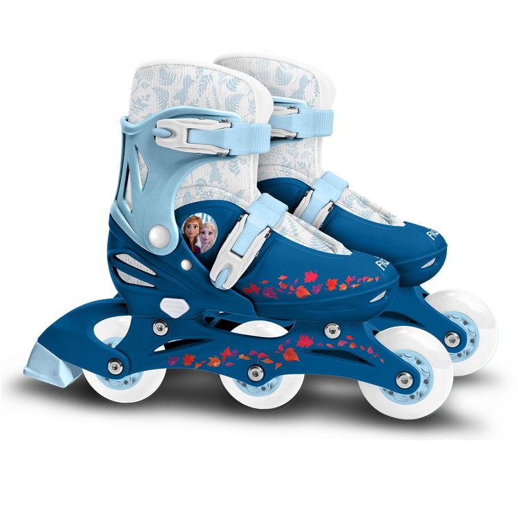 Ces rollers évolutifs 2 en 1 La Reine des Neiges 2 vont plaire aux petits comme aux grands. Ils sont ajustables et modulables ! En effet, vous allez pouvoir configurer vos rollers en fonction de votre expertise en matière de glisse. Au début positionnez les roues en mettant 2 à l'arrière et 1 à l'avant, vous aurez ainsi plus d'équilibre pour maîtriser les premières tentatives et minimiser les chutes. Ensuite, dès que vous aurez acquis de l'assurance, vous pourrez les mettre en ligne pour faire comme les grands. Les rollers passent à la position patins grâce à un système de visserie.