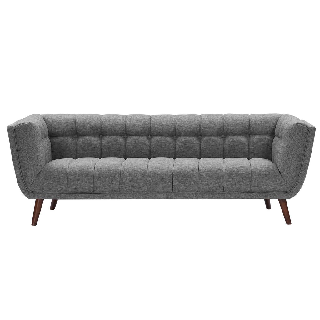 Canapé Carmen capitonné - Offrez-vous un canapé Carmen capitonné !Design et confort garantis avec le canapé Carmen capitonné. Ce canapé en tissu et en bois (eucalyptus et hévéa) mesure L 218 x P 90 x H 76 cm et dispose d'une assise généreusement rembourrée qui saura vous apporter votre dose de bien-