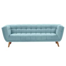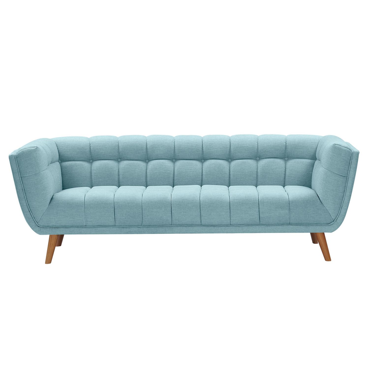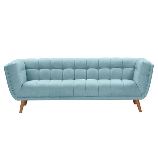 Canapé 3 places capitonné en tissu bleu clair - Carmen
