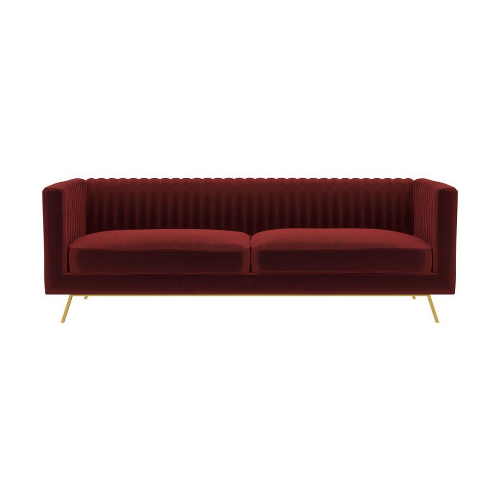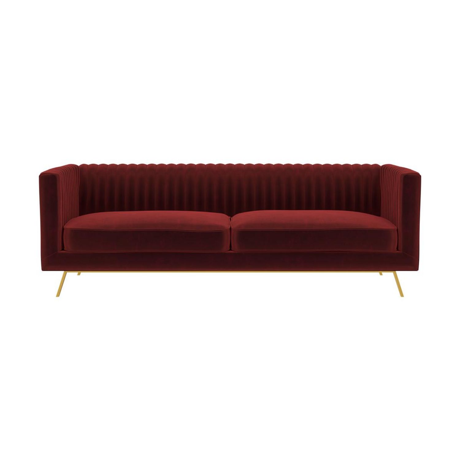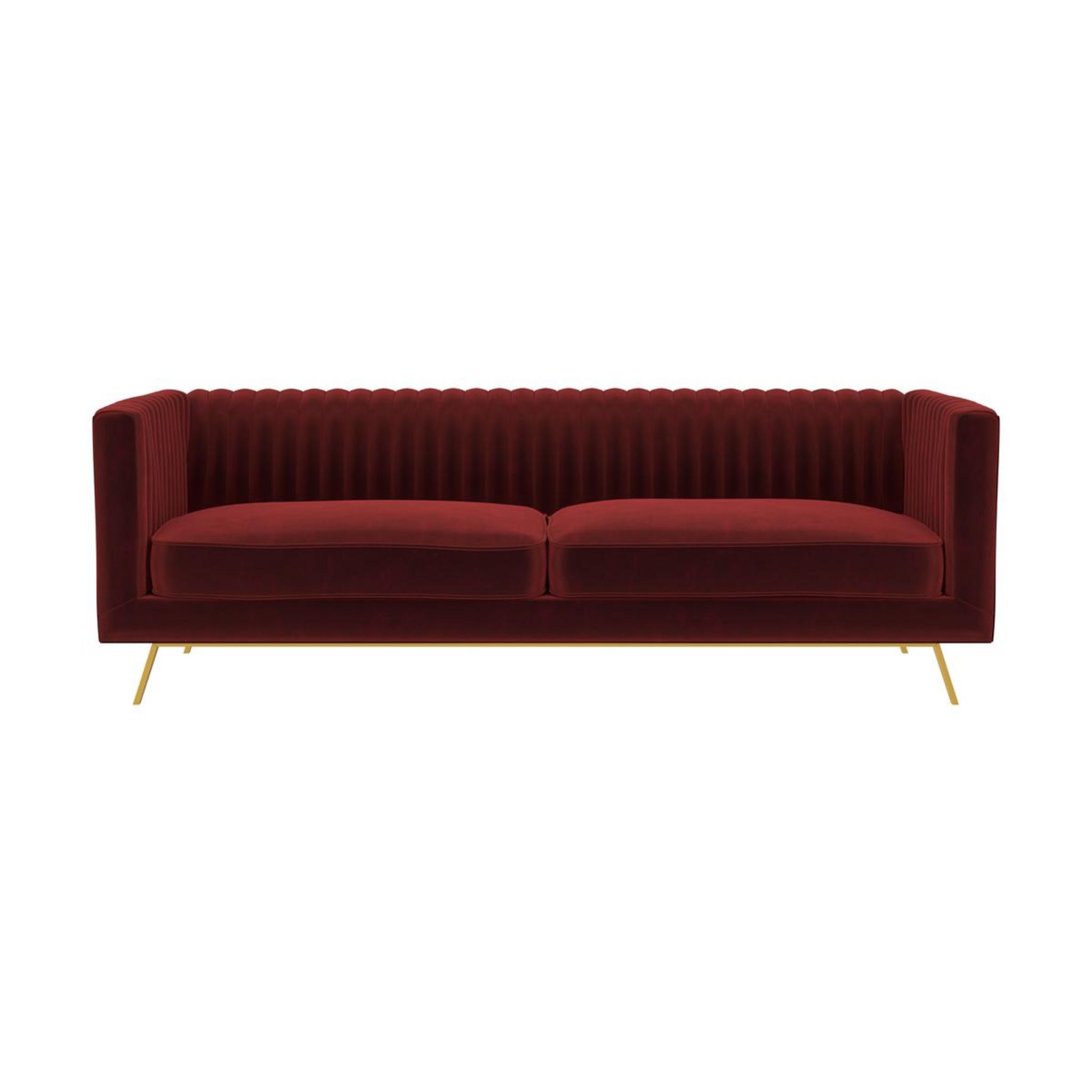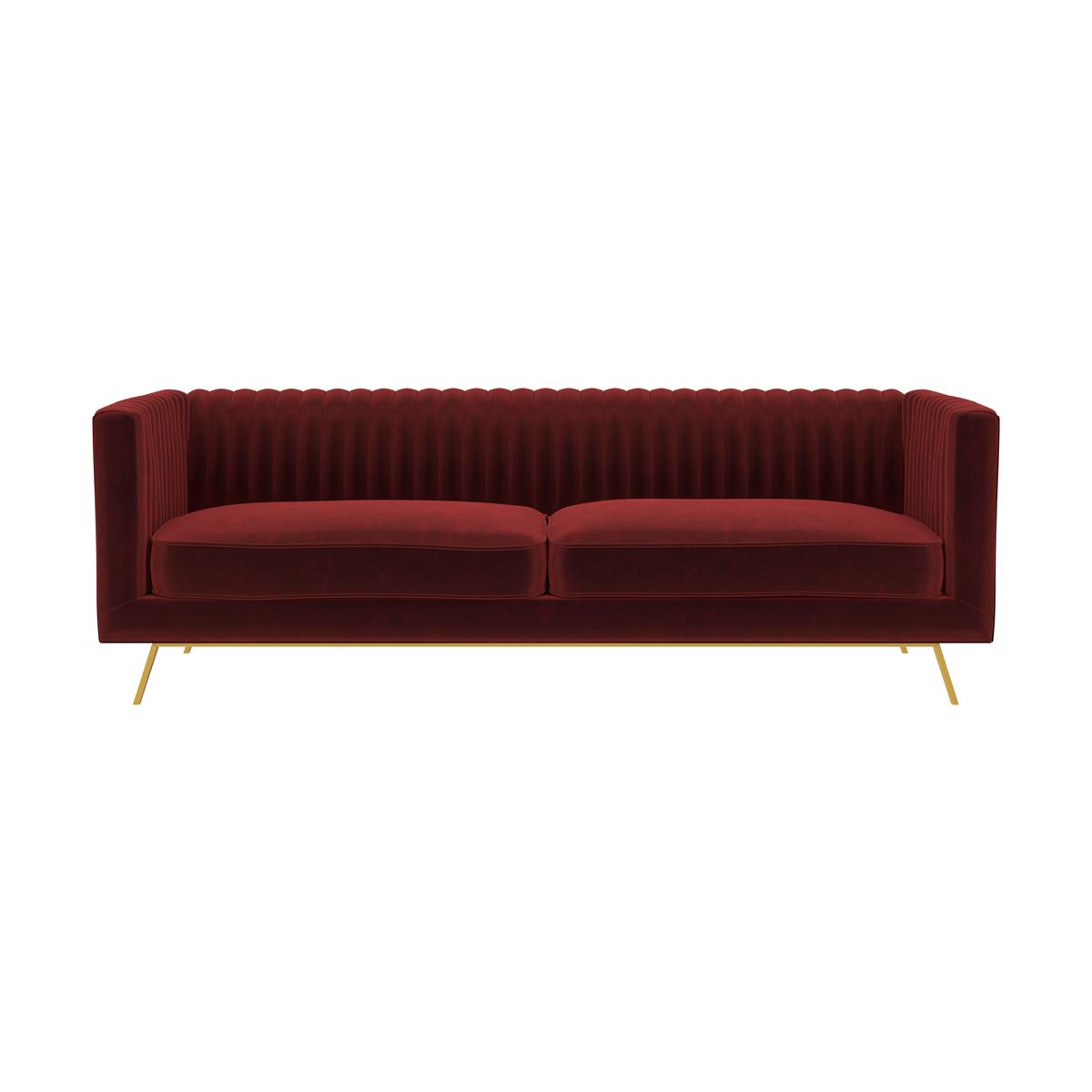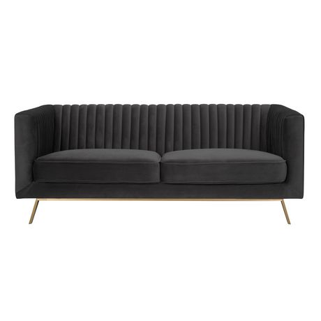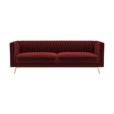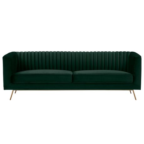 Canapé deux places ou trois places, le canapé Gatsby est en velours et pieds en métal.