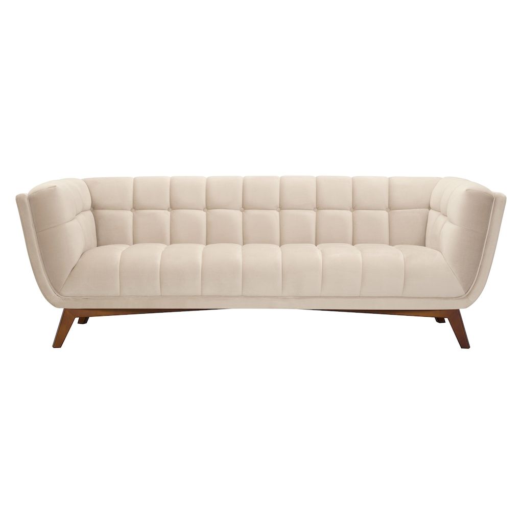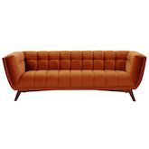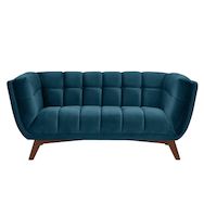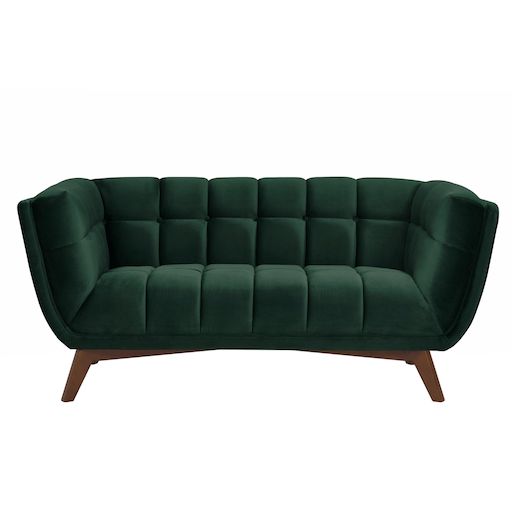 Canapé deux places ou trois places, le canapé Mona est en velours et pieds en bois.
