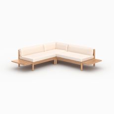 Canapé d'angle de jardin en teck massif et coussins blancs 4 places-Nadila