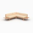 Canapé d'angle de jardin, teck massif, coussins rayés jaunes 4 places-Nadila