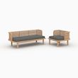 Canapé et fauteuil de jardin 3 places en teck massif, tissu gris-Kilda