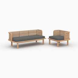 Canapé et fauteuil en bois de teck massif