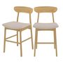 Lot de 2 chaises pour îlot central 66 cm en tissu beige et bois-Lana