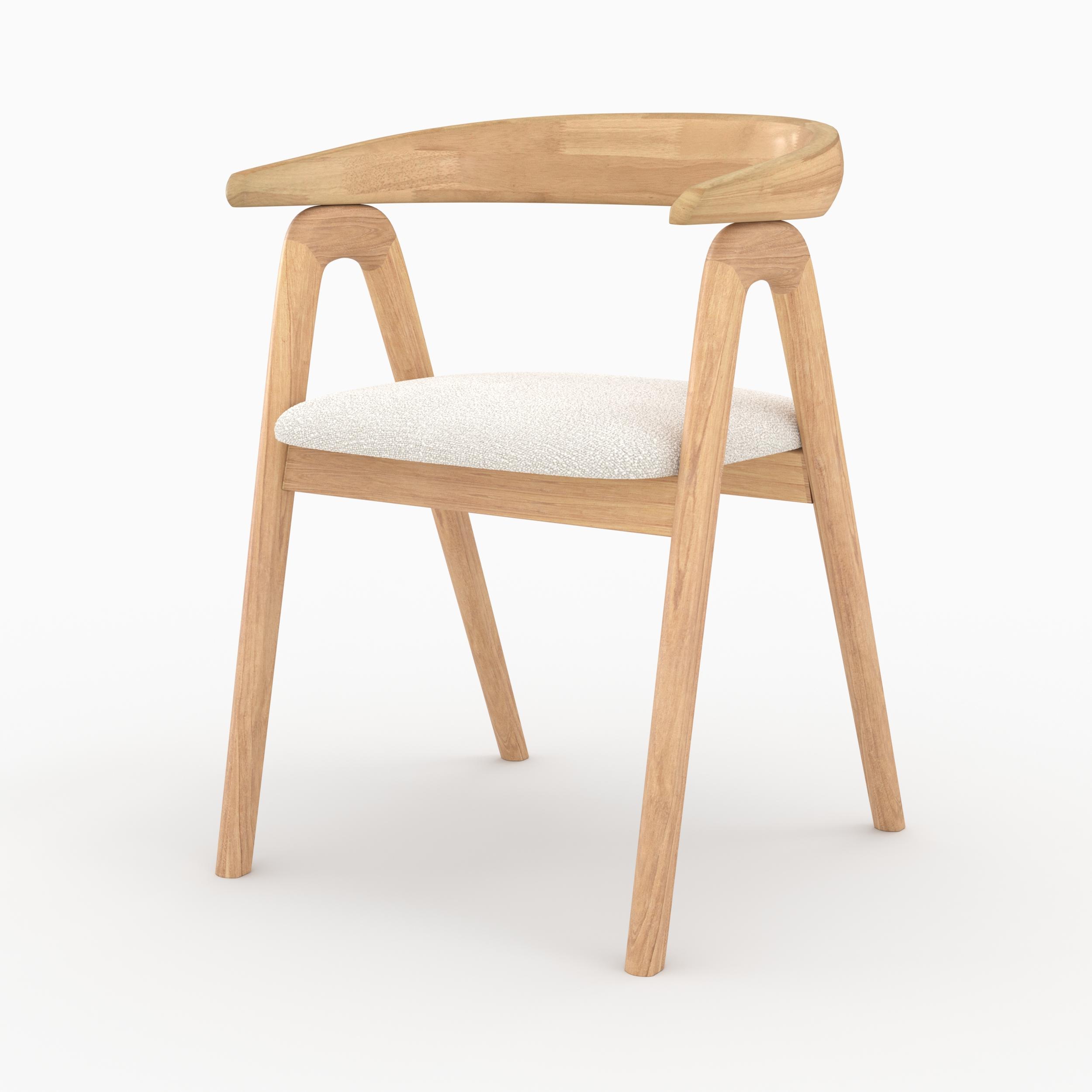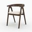 Le design raffiné de la chaise Hawa se distingue par ses lignes épurées et le mariage harmonieux entre le d'hévéa foncé et le tissu bouclé crème.