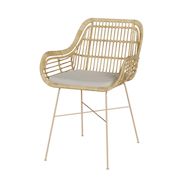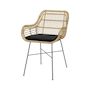 - Hauteur des accoudoirs : 63.5 cm - Matière : Assise et dossier en rotin, Pieds en métal, , Coussin d'assise en coton et polyester