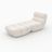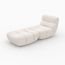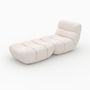 Cet ensemble fauteuil et pouf en tissu bouclé blanc se transforme en un clin d&rsquo,oeil en chaise longue généreuse.