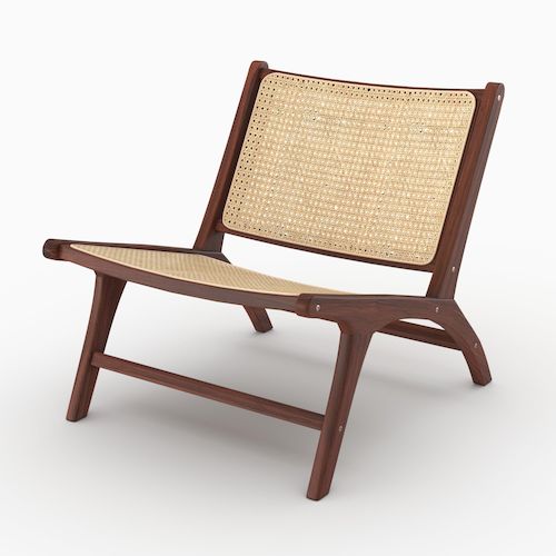 Fauteuil Kilka en bois de teck finition noyer et cannage en rotin -