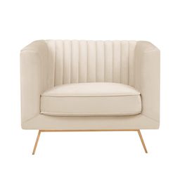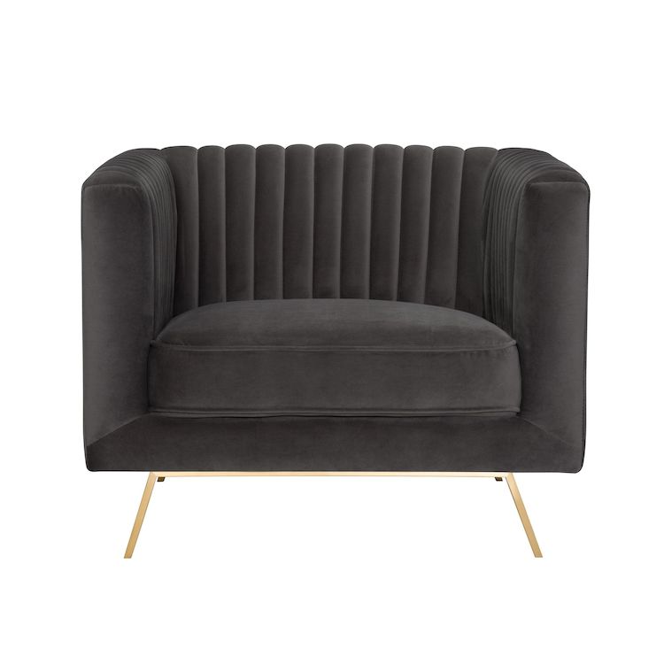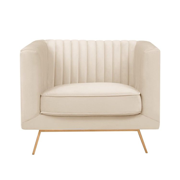 Vous allez adorer ses lignes simples et harmonieuses, ses pieds dorés et son coloris qui signent un fauteuil résolumment intemporel.