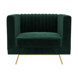 Confortable avec son assise large et ses grands accoudoirs, ce fauteuil en velours deviendra votre meilleur allié pour vous détendre tranquillement.