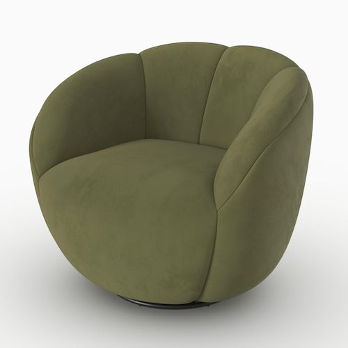 Fauteuil pivotant en velours vert olive foncé-Ysé