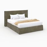 Lit coffre 160x200 cm Safia en tissu vert olive déhoussable - -
