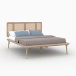 Lit double 140x190 cm en bois et cannage - Adik