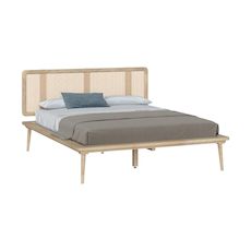 Le mindi est une essence exotique réputée pour sa robustesse. Dans cette version en bois massif et placage, on craque pour les nuances douces de sa tonalité. La tête de lit en cannage de rotin accentue le charme de l'ensemble. Vous aimerez aussi les pieds fuselés qui rehaussent ce lit double.