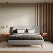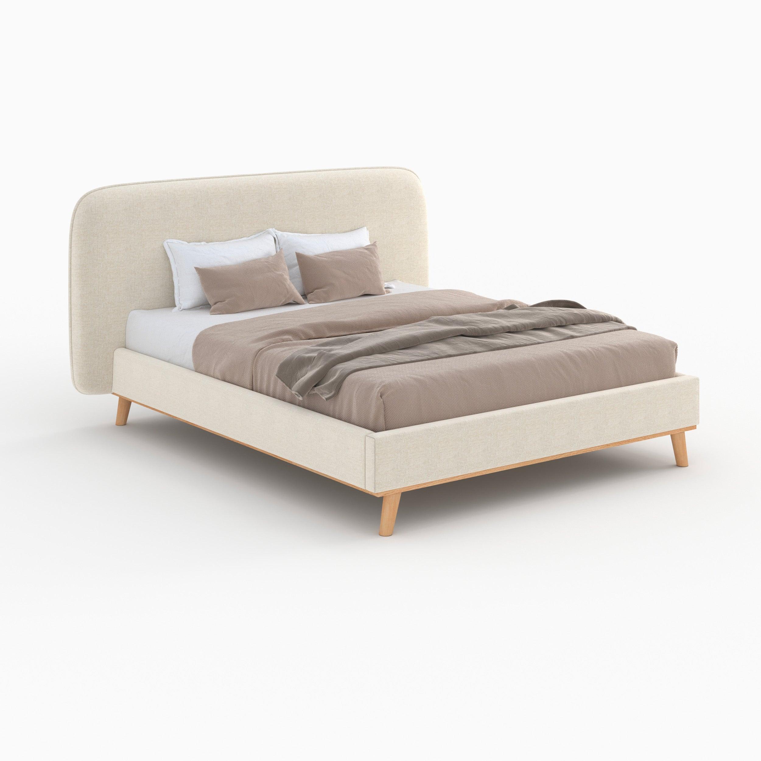 Lit double 160x200 cm en tissu gris/beige-Modjo