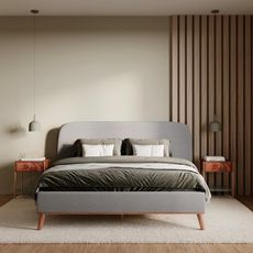 Lit double 140x190 cm en tissu gris/beige - Modjo