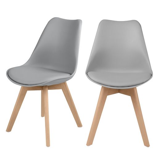 La coque du siège en plastique est agrémentée d'un coussin en PU garni de mousse, le tout monté sur un piètement en bois.