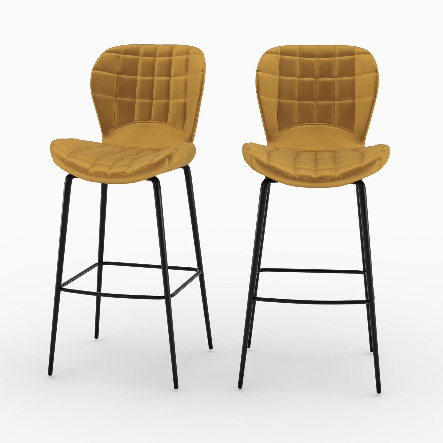 Lot de 2 chaises de bar 75 cm en velours bleu - Mazzia