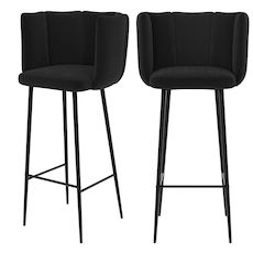 Lot de 2 chaises de bar en velours noir 75 cm - Rosy