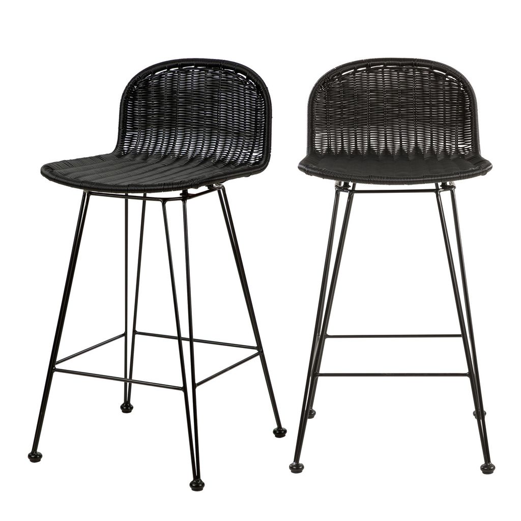 Lot de 2 chaises de bar mi-hauteur 63 cm en résine tressée marron - Jigani