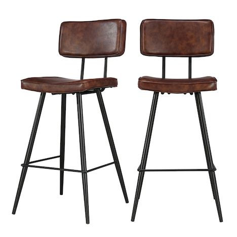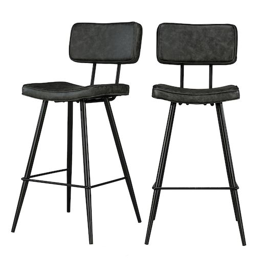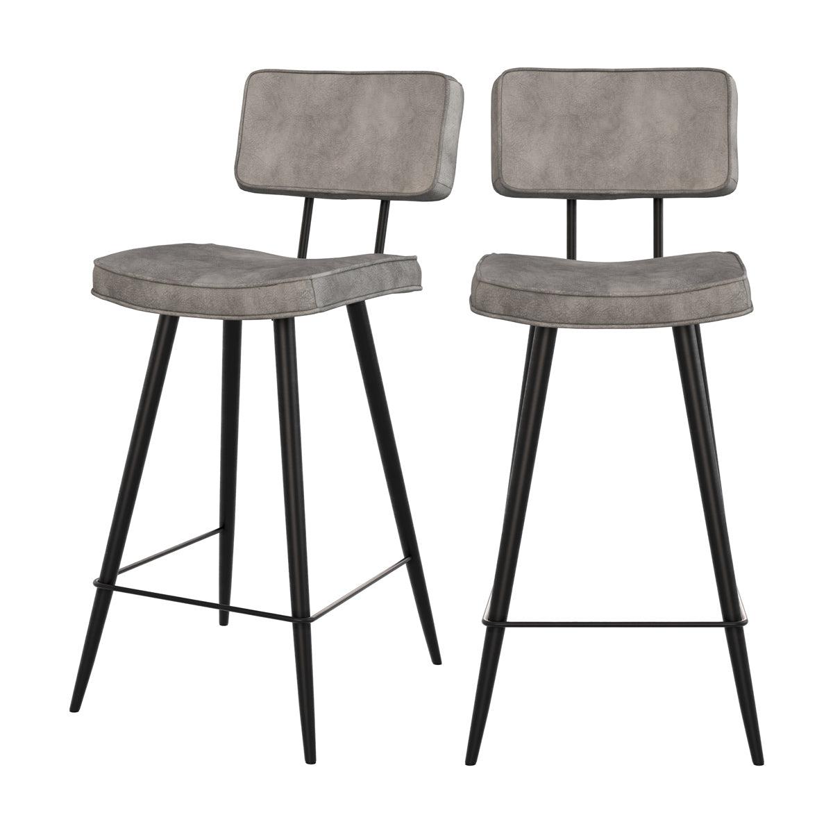 Lot de 2 chaises de bar mi-hauteur 66 cm cuir synthétique gris / noir - Texas