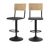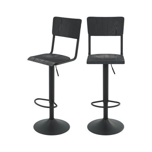 Lot de 2 chaises de bar réglables 60/80 cm en bois noir - Clem