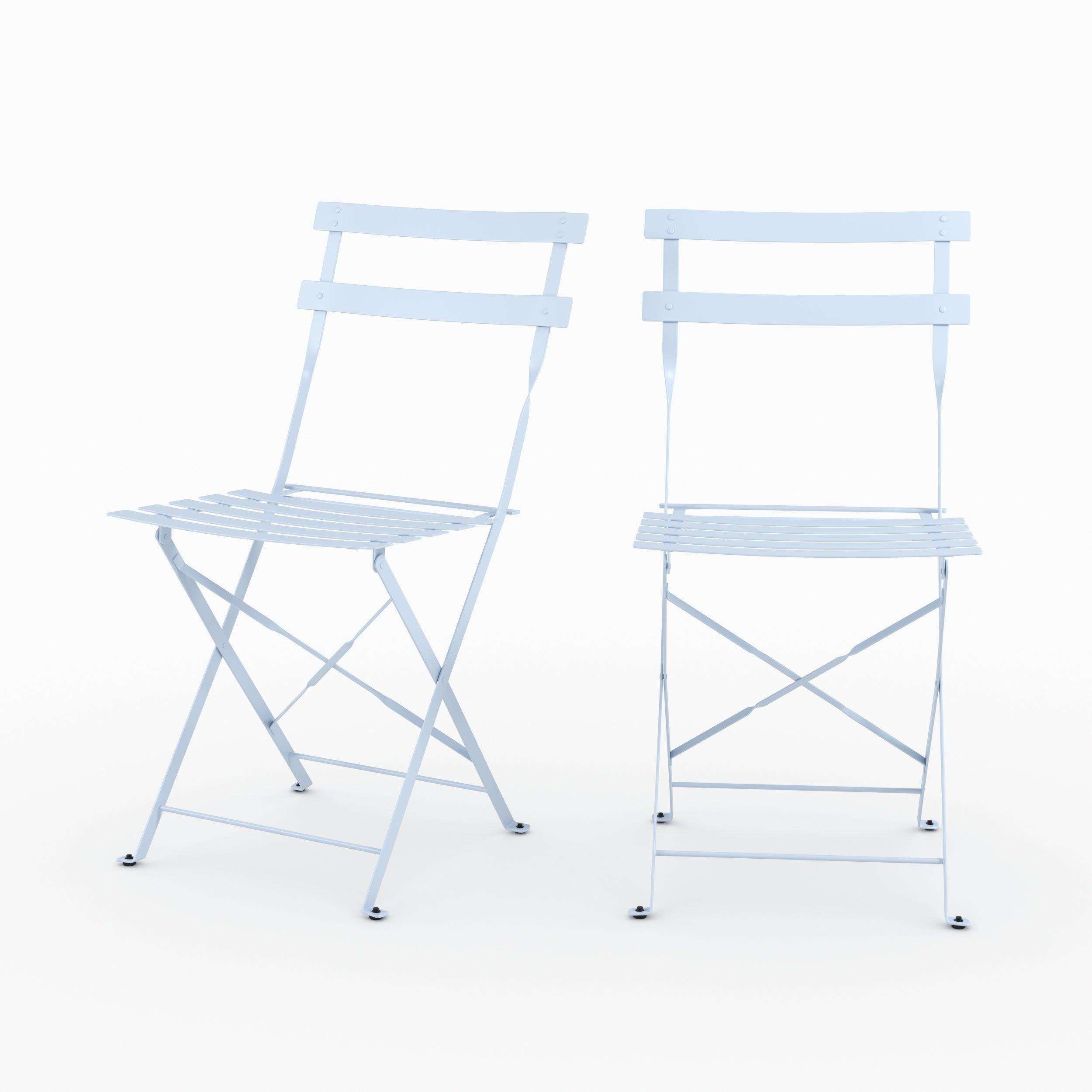 Lot de 2 chaises de jardin en métal bleu pastel, pliantes-Toba