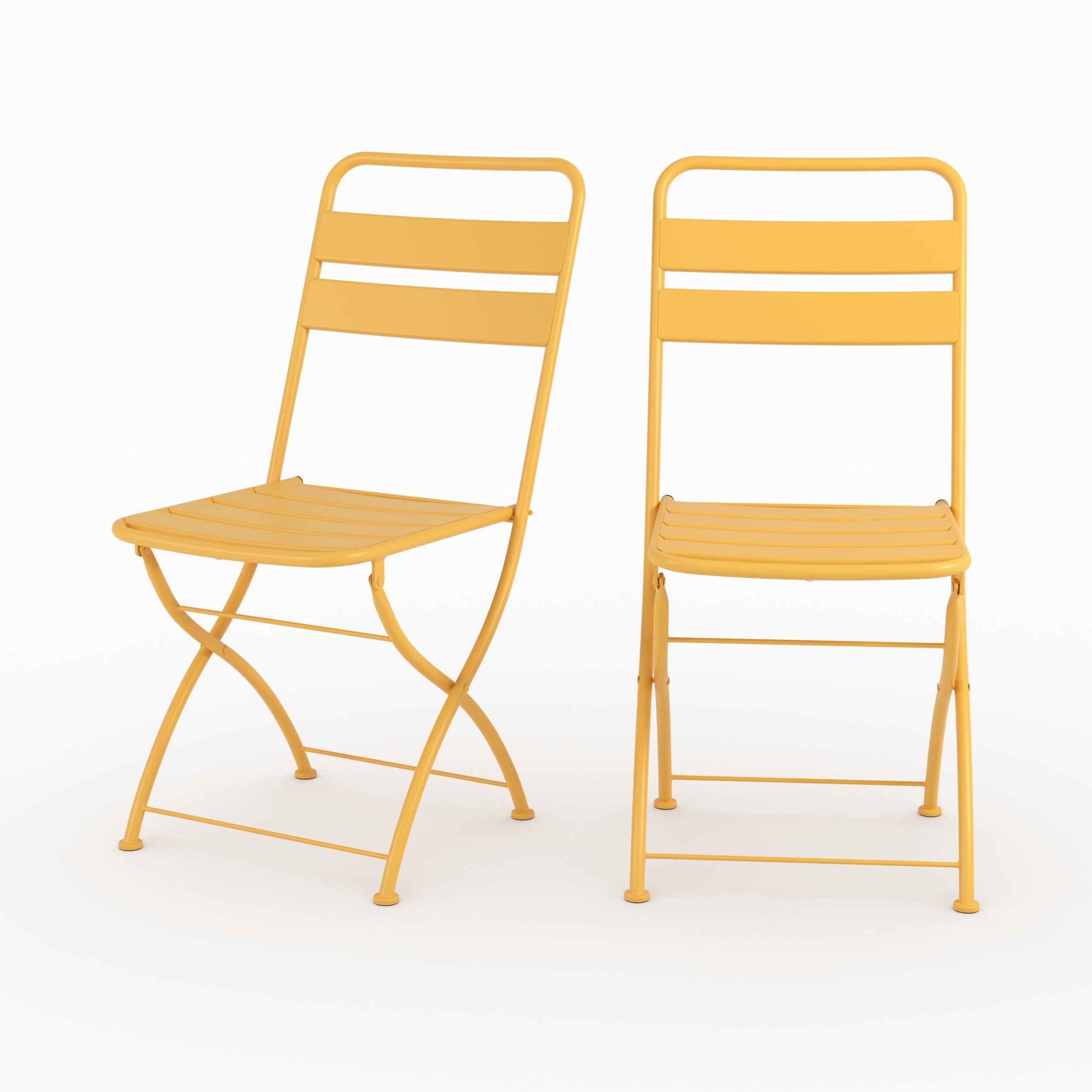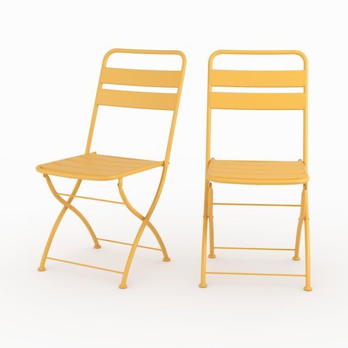 Lot de 2 chaises de jardin en métal jaune beurre, pliantes-Yumi