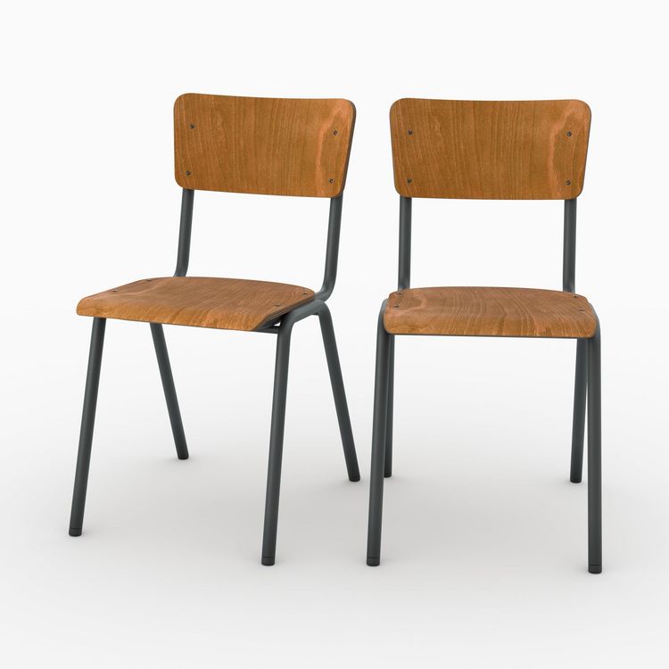 Lot de 2 chaises écolier empilables en bois foncé - Clem