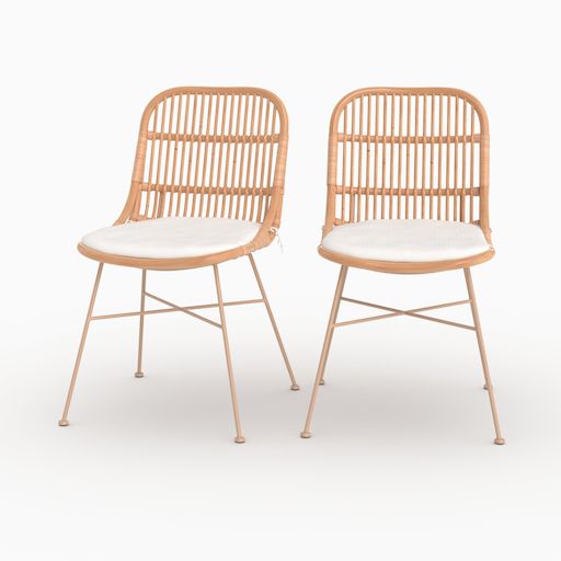 Lot de 2 chaises en rotin beige et pieds en métal beige-Moon