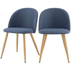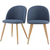 Lot de 2 chaises en tissu bleu et pieds en métal effet bois - Cozy