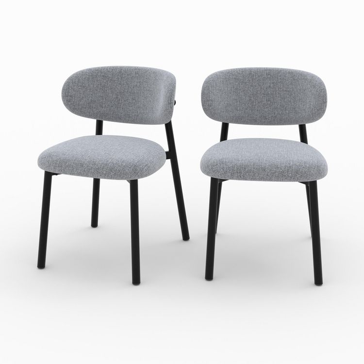 Lot de 2 chaises en tissu gris clair chiné et pieds en métal noir - Nao