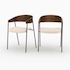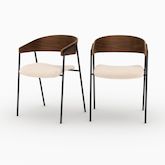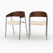 Le placage noyer souligne leur silhouette organique et intemporelle, tandis que le velours blanc cassé capte la lumière avec subtilité.