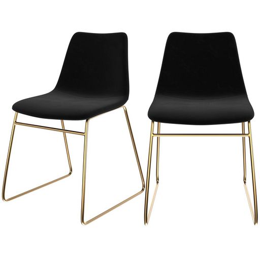 Lot de 2 chaises en velours noir et pieds en métal doré - Gaspard